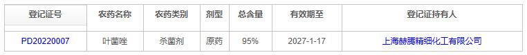 2022年1月18 日,经中国农业农村部审核批准,必一体育官网平台获得新规下的首个95%叶菌唑原药登记证。